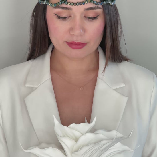 The Iris Aurora Headpiece is a tribute to the goddess of the rainbow, an ethereal blend of iridescent hues that shimmer with every movement. Handcrafted in Ireland with 100% crystal beads, this piece embodies both divine color and graceful artistry.